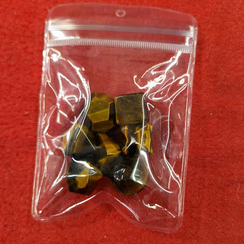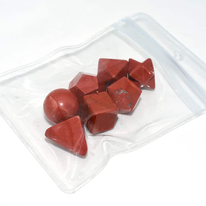 Our Chakra Crystal Set includes Rose Quartz, Yellow Tiger Eye, Amethyst, Red Jasper, Green Aventurine, Clear Quartz, and Red Striped Agate. Custom materials such as Obsidian, Howlite, or Lapis Lazuli are also available.