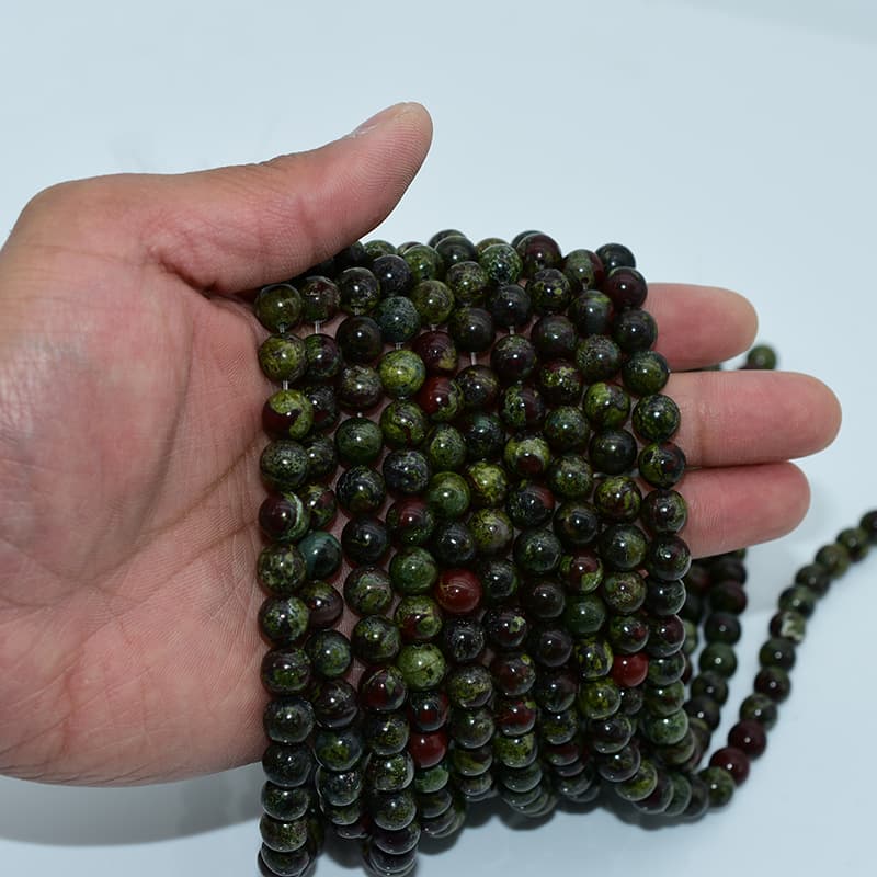 Dragon Blood Jasper Beads can be strung into bracelets, necklaces, or keychain charms, and they also work for DIY kits. Use stretch cord for fast production, or wire for higher-end pieces. Remove jewelry before showering or sleeping to reduce wear on cord and maintain surface finish.