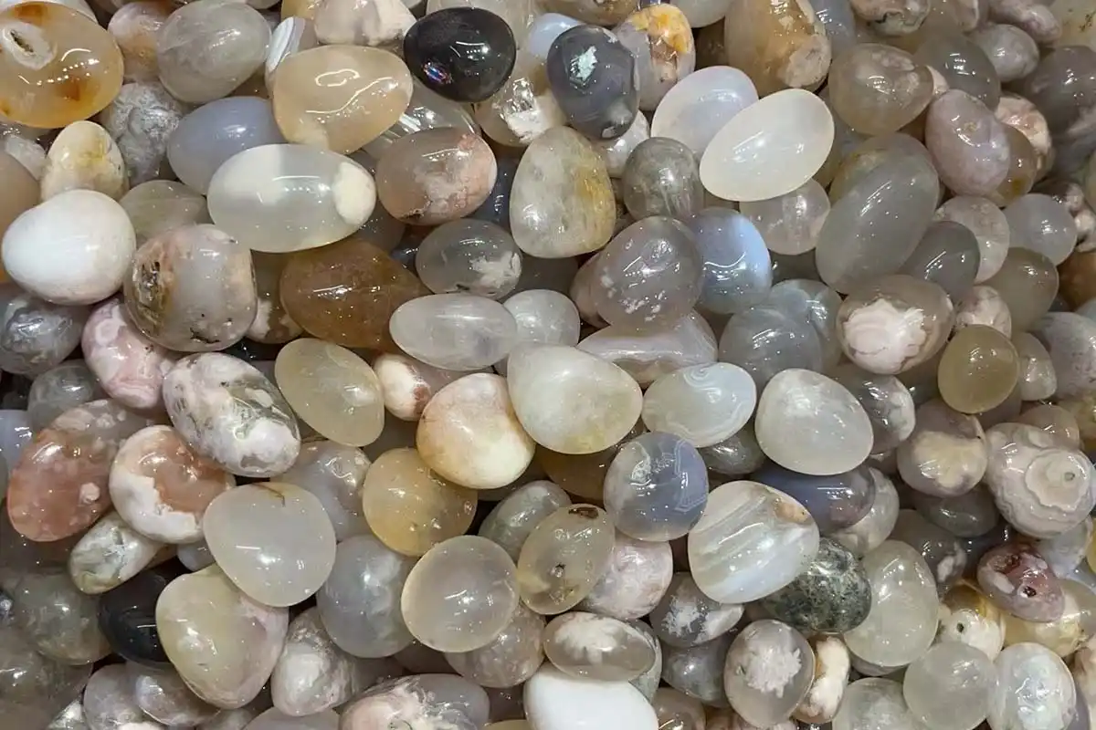 Compared with moss agate bulk, flower agate typically sells at a slightly higher rate, justified by its artistic inclusions and steady supply. Wholesale clients find the cost-performance ratio attractive because it provides premium appearance without the high expense of rarer stones like larimar or jade.