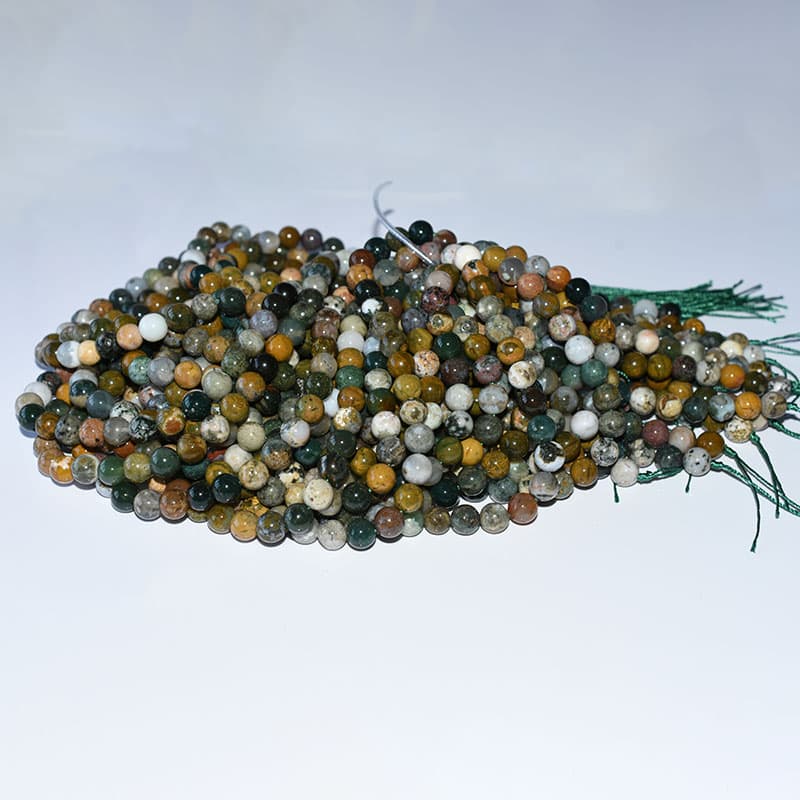 Ocean Jasper Beads are multi-colored, orbicular stones from Madagascar with flowing patterns that resemble waves, islands, and shorelines. Each strand blends greens, beige, cream, gray, and soft blue, so repeat orders still look fresh in your showcases. The stone suits crystal shops, online sellers, DIY brands, subscription boxes, and yoga or meditation studios that want calming yet eye-catching designs. With steady supply, clear grading, and flexible packing for wholesale orders, these beads become an easy long-term pillar in your jewelry or tumbled-stone collections.
